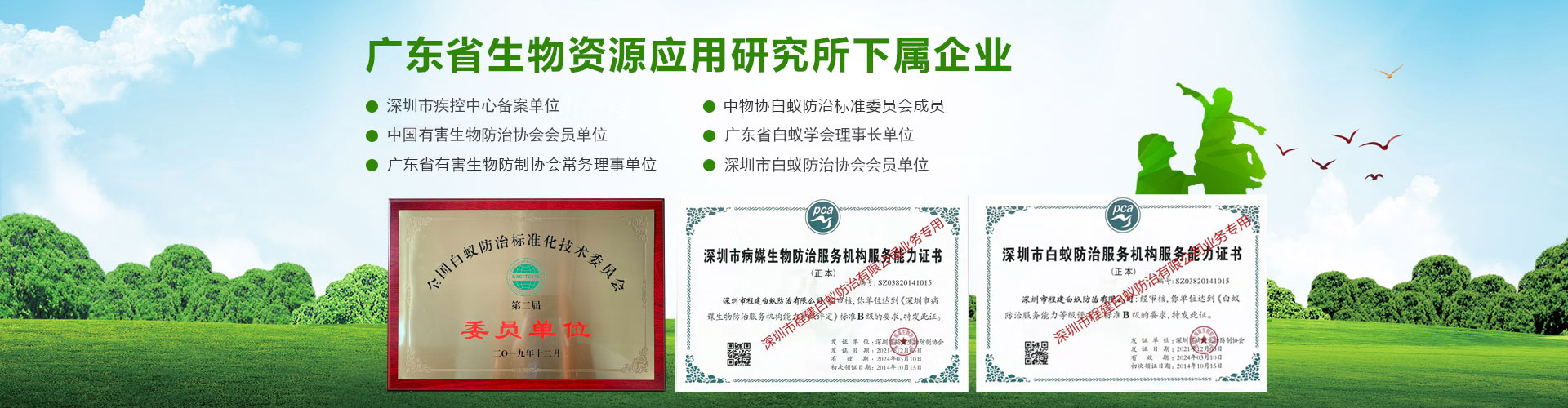 專注于徹底根治、防治結合,售后跟蹤服務,專業(yè)服務工程師有豐富實戰(zhàn)經(jīng)驗超過十年。持有專業(yè)資格證書認證:“有害生物防制服務機構服務能力證書B級”、“白蟻防治服務機構服務能力證書B級”所有員工持有“深圳市白蟻防治上崗證”和“深圳市除蟲滅鼠上崗證”,雙資格證上崗服務。榮獲過:“優(yōu)質服務示范單位”、“白蟻防治服務信譽AAA級單位”、“深圳市白蟻防治先進單位”、“深圳市十大白蟻防治品牌”、“深圳市殺蟲公司”、“深圳市消殺公司”先進單位等榮譽。